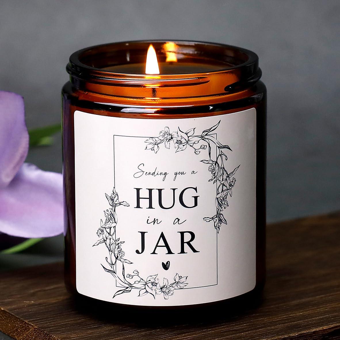 - Unique Sympathy Gifts for Loss of Loved One - When she is going through difficult times and needs love and support, let her know that you are thinking of her. Thinking of you gifts for women, bereavement gift ideas, condolence gifts, candle sympathy gift baskets, condolences gift for loss, hug candle, hug in a jar candle, pet loss of dog sympathy gift no words just hugs candle.
