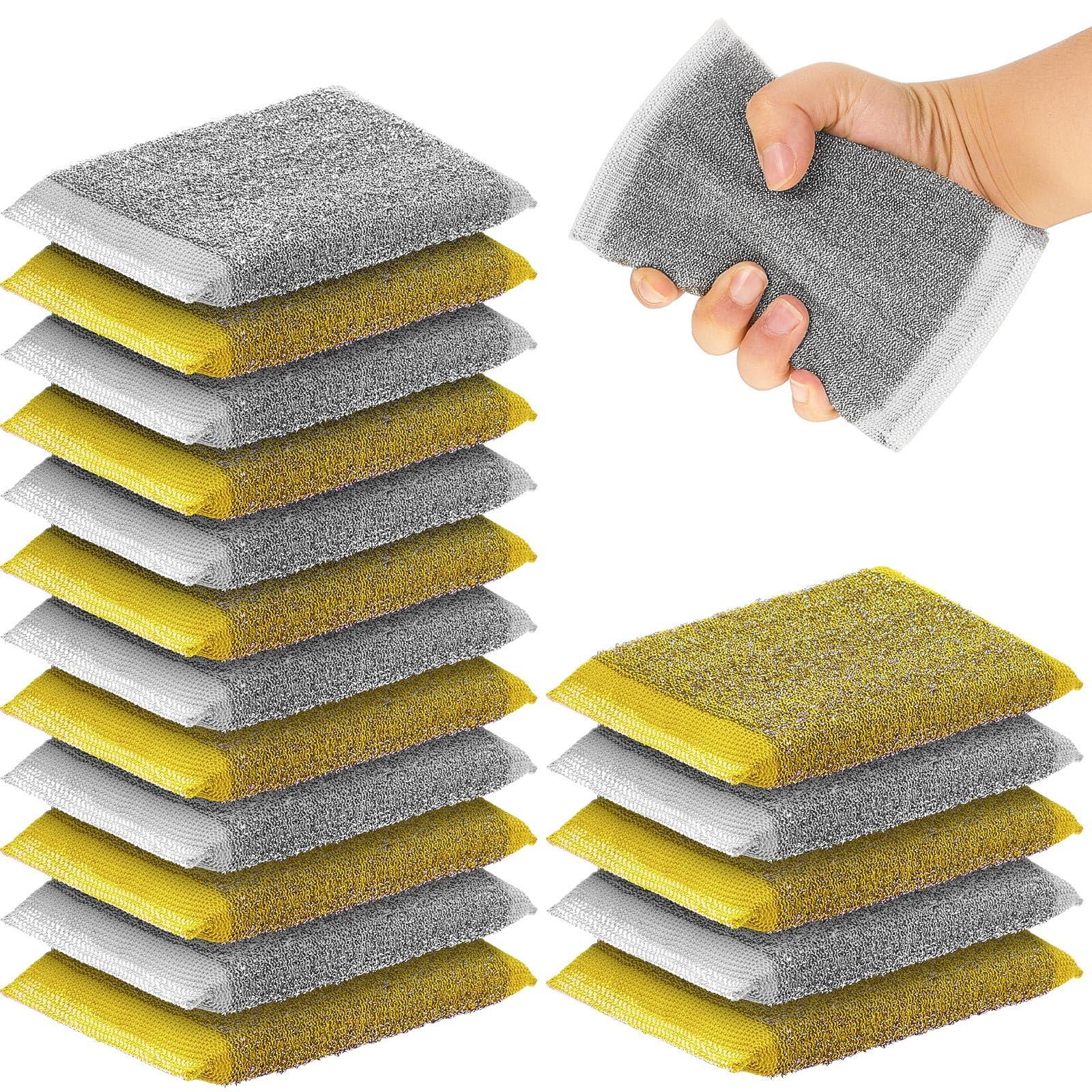 - Large Quantity: with a package of 24 steel scrubbers (yellow, gray) for cleaning dishes included, 12 for each color, enough for your daily cleaning needs; No need to constantly buy other sponges, saving you time and making cleaning more convenient