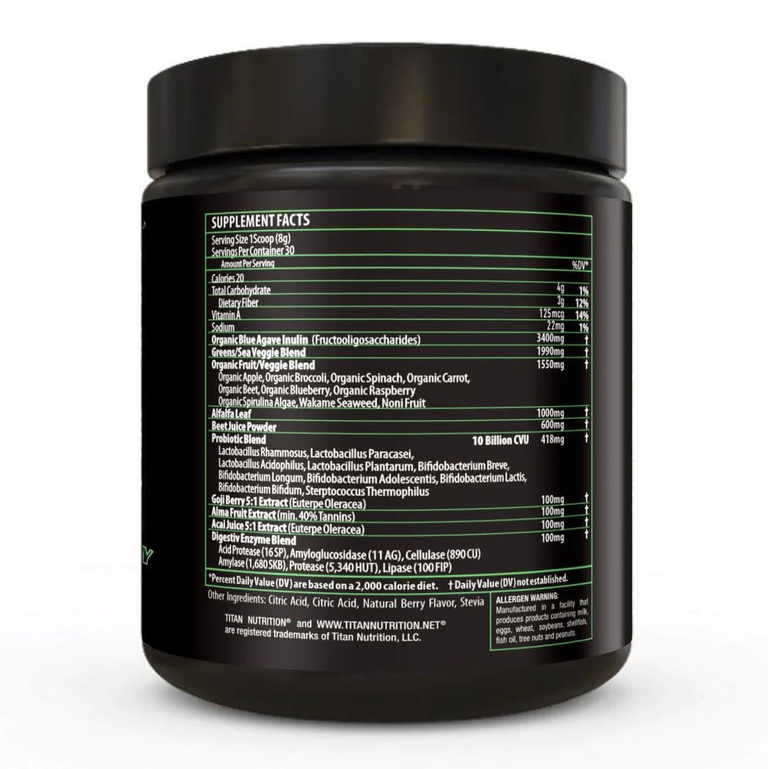 - ENHANCE YOUR IMMUNE SYSTEM: Naturally strengthen your immune system with Titan PurGREENS. The included prebiotics and digestive enzymes enhance immune function, bolster your body's defenses against illness, and promote faster recovery. Fitness goals begin with a resilient immune system. Your journey to a healthier you starts with a resilient immune system, and PurGREENS is here to support you every step of the way!