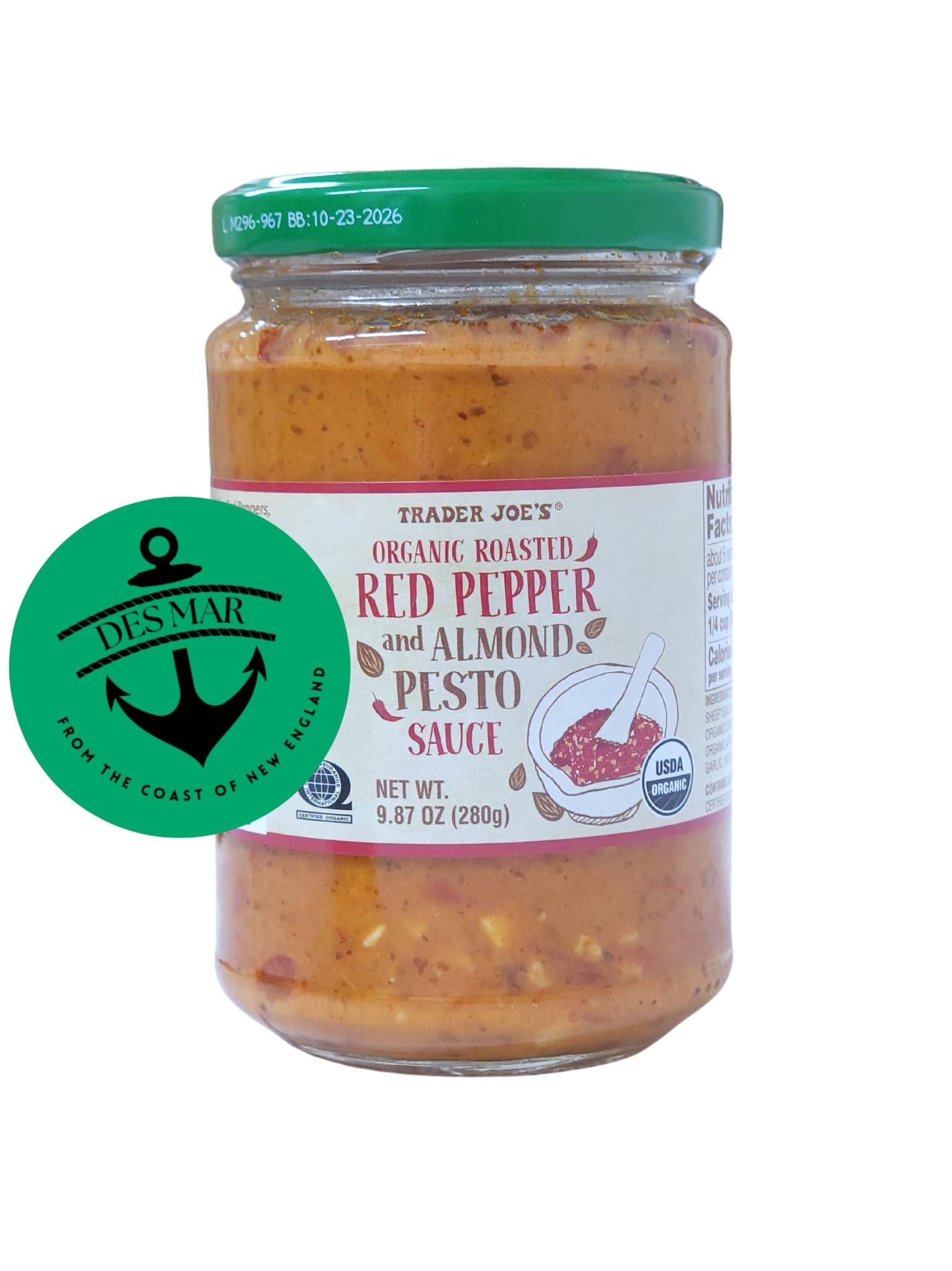 While there is some basil in this Pesto, the real star of the show is Organic Roasted Red (Bell) Peppers. These are crushed with organic PDO Pecorino Romano cheese, organic almonds, organic onions, organic garlic, and a handful of organic herbs and spices, including marjoram, basil, and paprika. These ingredients are artfully emulsified with a combination of organic extra virgin olive oil and organic sunflower oil. The final flavors are delicately fine-tuned with touches of organic cane sugar, and organic apple cider vinegar.
