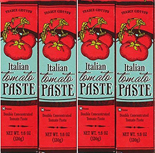 Trader Joe's Tomato Paste Tube (4.93oz/140g) [Pack of 4]. Ingredients: Tomato and Salt. Double concentrated,K Pareve, Great when you need a tablespoon or two. Eliminate waste.