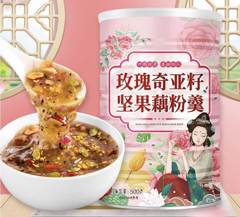 Shelf life: 180 days (manufacturing date is printed on the surface of the package). Note: The date on the package is the manufacturing date\nNet content (specifications): 500g/can (red jujube tremella) lotus root starch soup)\nIngredients/ingredients: Red jujube, white mushroom, lotus root powder, etc.\nBrewing method: Put 3-4 tablespoons of lotus root starch in a container, add hot water over 100 degrees and brew it, stir it for about 1 minute until it becomes a transparent paste, and eat it.\nStorage method: Store in a cool, dry and well-ventilated place
