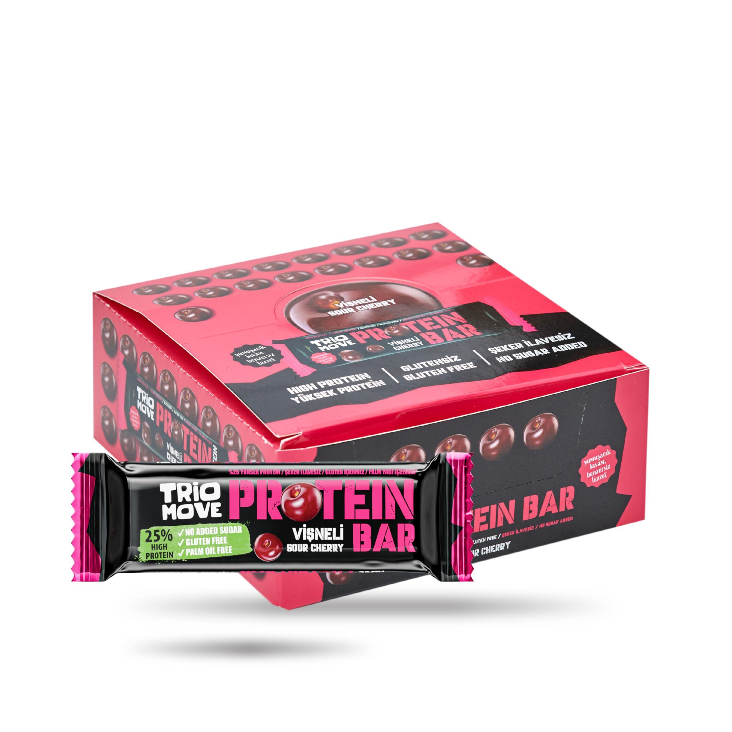 Indulge in the delightful TRIO MOVE Sour Cherry and Cocoa Protein Bar, a perfect fusion of flavor and nutrition. With 25% quality protein, it's an ideal choice for those looking for a substantial protein snack. Each bar is perfectly portioned at 150 calories, ideal for fitting into your daily routine. Enjoy the rich flavor enhanced by no added sugar, coupled with the benefit of a gluten-free treat. Free from additives or preservatives, this bar is as pure as it is tasty. The blend of sour cherry and cocoa offers a unique, delicious experience, while the soft texture makes it a pleasure to eat. Perfect for those on the move or in need of a protein-rich snack. TRIO MOVE - Fuel your day deliciously!