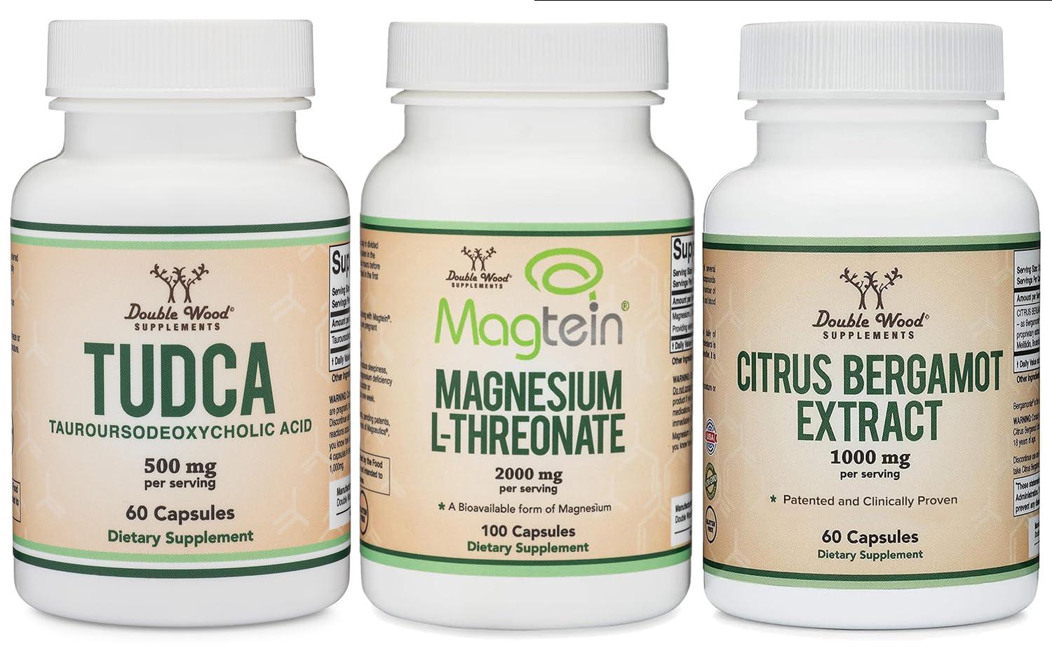 - HEALTH BUNDLE: This bundle contains one bottle of TUDCA bile salts (60 capsules), one bottle of Magnesium L-Threonate (100 capsules), and one bottle of Citrus Bergamot (60 capsules)