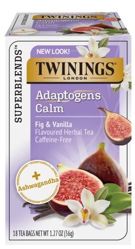 - TWININGS TEA WITH CALMING ADAPTOGENS: Ready to unwind, enjoy two cups of this smooth, relaxing tea per day as part of a varied and balanced diet and healthy lifestyle for optimum calming benefits; 108 Caffeine-free tea bags