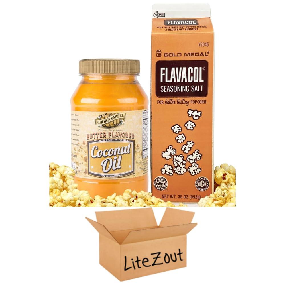 - With the generous sizes of both the Popcorn Salt and Butter Flavored Coconut Oil included in this kit, you'll have more than enough to enjoy multiple movie nights with family and friends. Plus, the convenient packaging makes it easy to dispense the perfect amount of seasoning and oil for your popcorn.