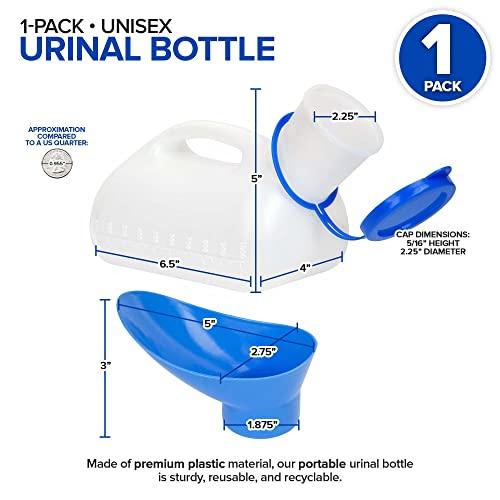 Unisex Urinal Bottle (1 Pack) - Portable Urinal for Women & Men - Female Urinal with Lid - 32 Oz Female Urination Device - Women Pee Funnel Cup for Emergency, Travel, Car & Camping - Stock Your Home