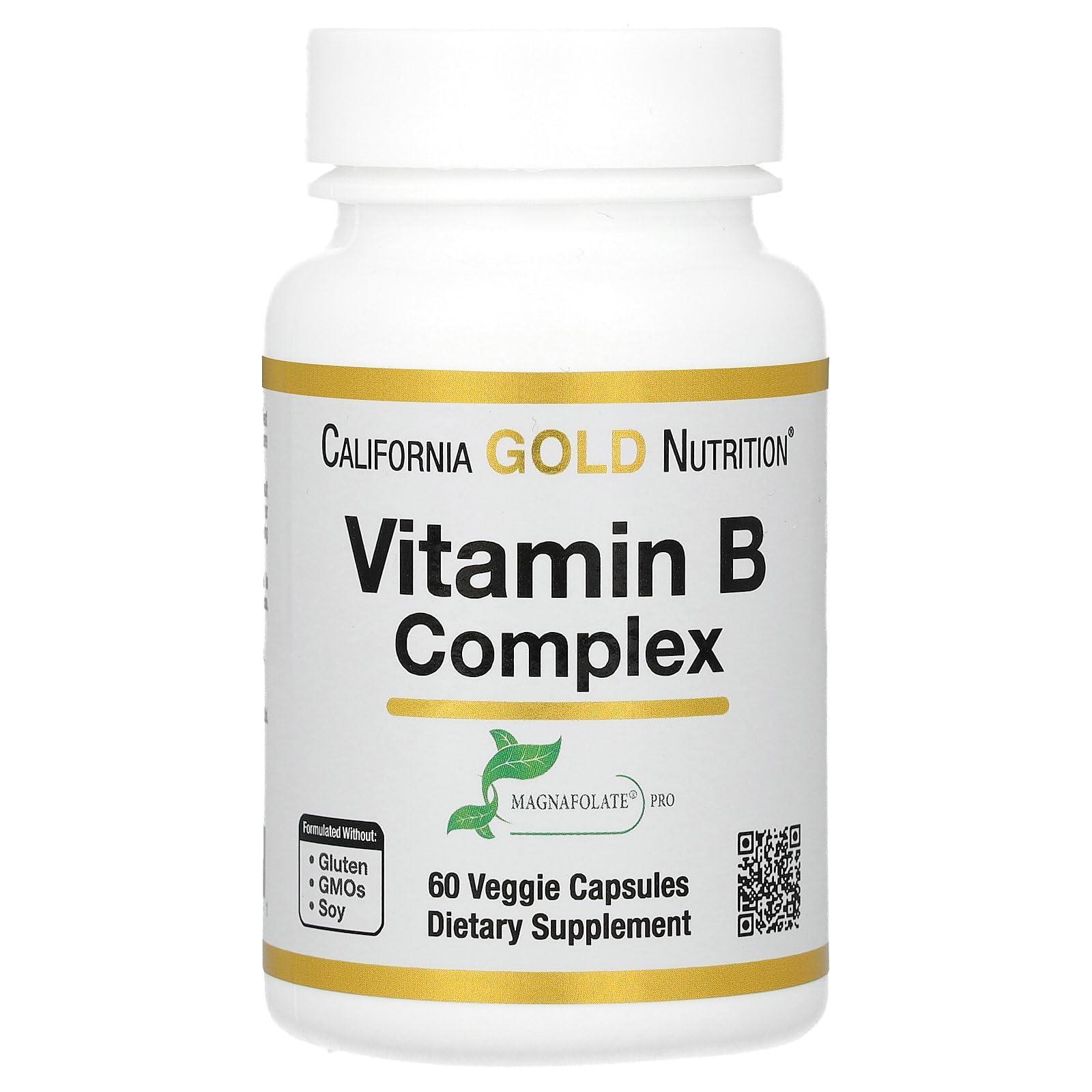 Vitamin B Complex, Thiamin B1, Riboflavin B2, Niacin B3, Pyridoxine B6, Biotin B7, Pantothenic Acid B5 and Pro Folate B9, Gluten Free, Non GMO, 60 Veggie Capsules