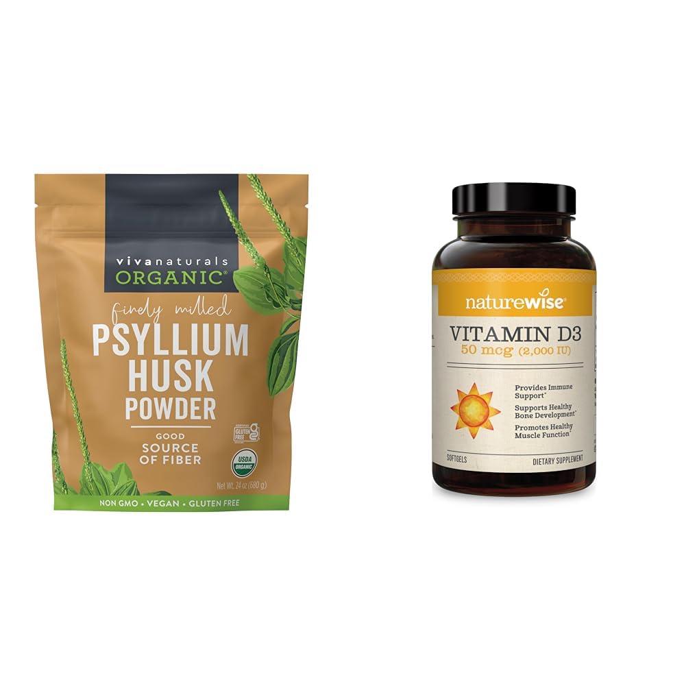 This bundle pairs a 24 oz bag of Viva Naturals' organic psyllium husk powder with a 360-count bottle of NatureWise's Vitamin D3 softgels. The psyllium husk powder is a versatile fiber supplement made from finely ground psyllium husk that can be easily mixed into smoothies, juices, baked goods, cereals, soups and more to help meet daily fiber needs. It acts as a natural thickener and absorbs excess moisture, helping achieve the perfect texture in foods. The Vitamin D3 softgels provide 2000 IU of vitamin D3 per serving from cholecalciferol for healthy bone, teeth, muscle and immune function. The D3 is delivered in certified organic olive oil for enhanced bioavailability. Both the psyllium husk powder and D3 softgels are made in the USA following strict quality standards. They are certified USDA organic, non-GMO, gluten-free and vegan. Together, these two products offer complementary nutritional support - the psyllium as a source of dietary fiber and the D3 for proper vitamin levels. Their versatile formats make it simple to incorporate into your normal daily routine.