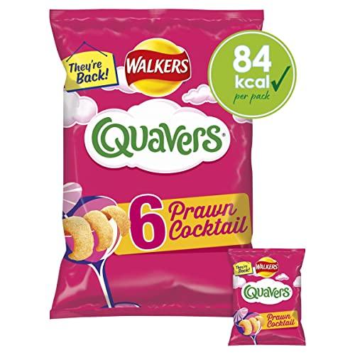 6x16g multipack of Walkers Quavers prawn cocktail snacks They\'re back! You asked us to bring back the delicious prawn cocktail flavour and we\'ve listened Walkers Quavers are the perfect lunchtime or afternoon snack Suitable for vegetarians No artificial colours or preservatives