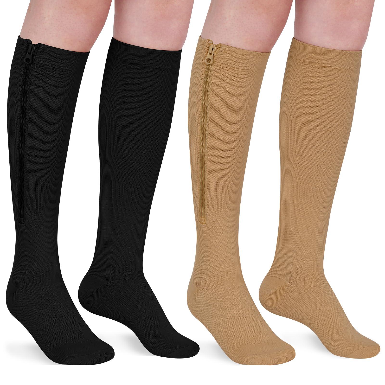 - ZIPPTER DESIGN & CLOSED TOE: Each pair of compression socks has a sturdy high-quality zipper to ensure a comfortable fit. Stay in place as it prevents from unzipping. You can easily put them on and take them off. The internal fabric under the zipper can protect the skin from friction.