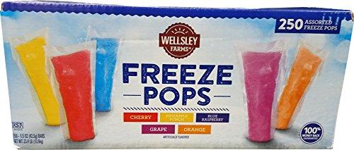 Wellsley Farms Freeze Pops are a perfect treat. They come in 5 delicious flavors: Cherry, Grape, Orange, Pineapple Punch, Blue Raspberry.