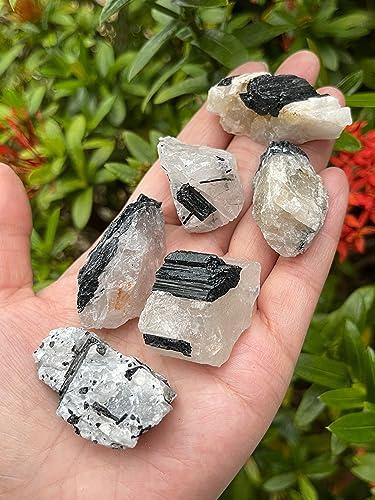 - Black Tourmaline with Quartz Rough Stones, Natural Raw Black Tourmaline with Quartz, Black Tourmaline with Quartz Healing Crystals, Grade A Quality