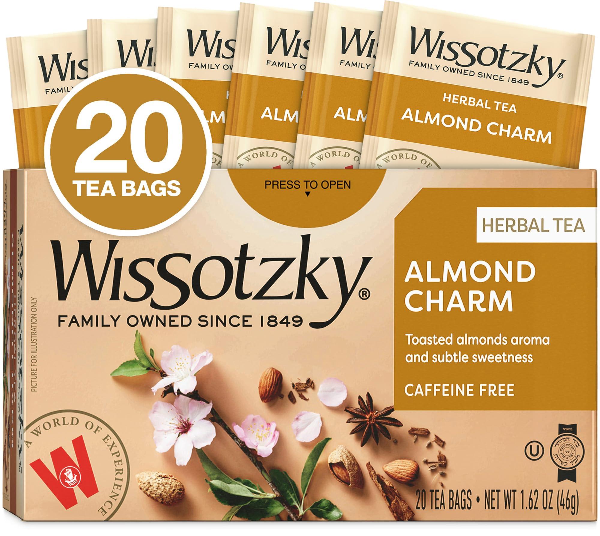 - IRRESISTIBLE CHARM - Wissotzky Almond Charm Tea captivates your senses in a luxurious embrace of rich, nutty flavor and enchanting aroma. This delightful blend features toasty carob, roasted chicory root, and an irresistible almond essence, crafting a warm and comforting experience reminiscent of indulging in a freshly baked almond biscotti. Allow each sip to transport you to a realm of indulgence, where every nuance unfolds to create a truly cozy and heartwarming treat. Wissotzky Almond Charm Tea is certified Kosher.