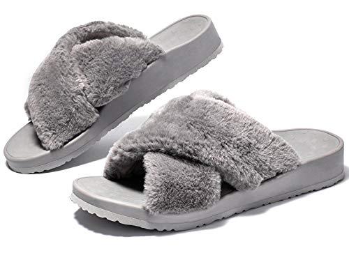 - ELEGANT UPPER DESIGN: Cross band with open toe design makes a pair of cozy, chic and elegant women slippers. Open toe which can easily wear on and off, keeps your feet breathable without your toes sweating