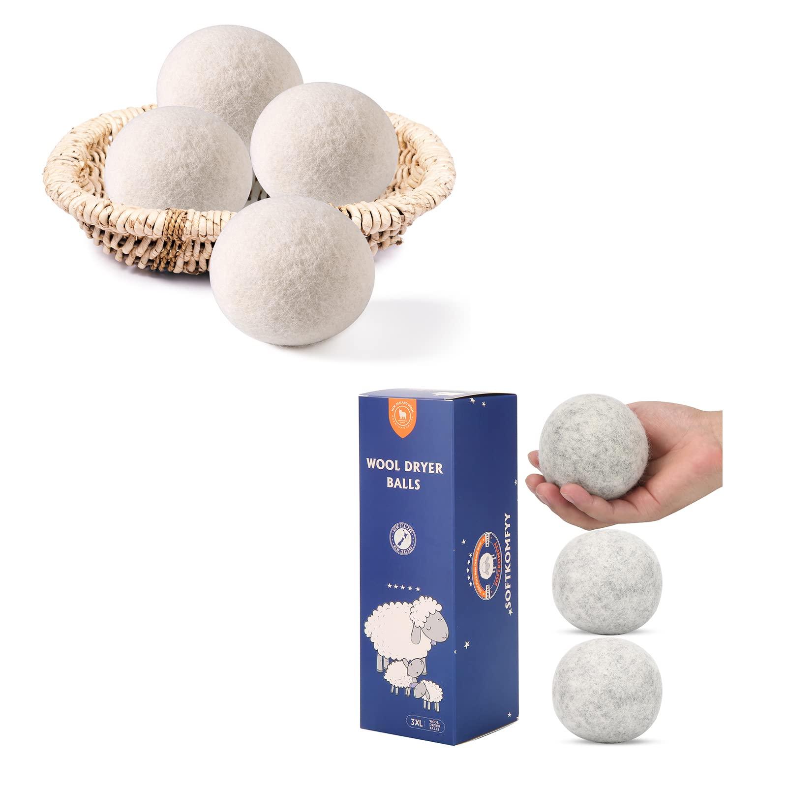 - LIVE IN A GREEN LIFESTYLESoftkomfyy wool dryer balls are made of premium 100% New Zealand wool.There are 3 gray XL wool dryer balls in a lovely paper box larger than a tennis ball.Toss the wool dryer balls in to the dryer you will be surprised at how effective these natural laundry balls are and will make your clothes more fluffy and soft.