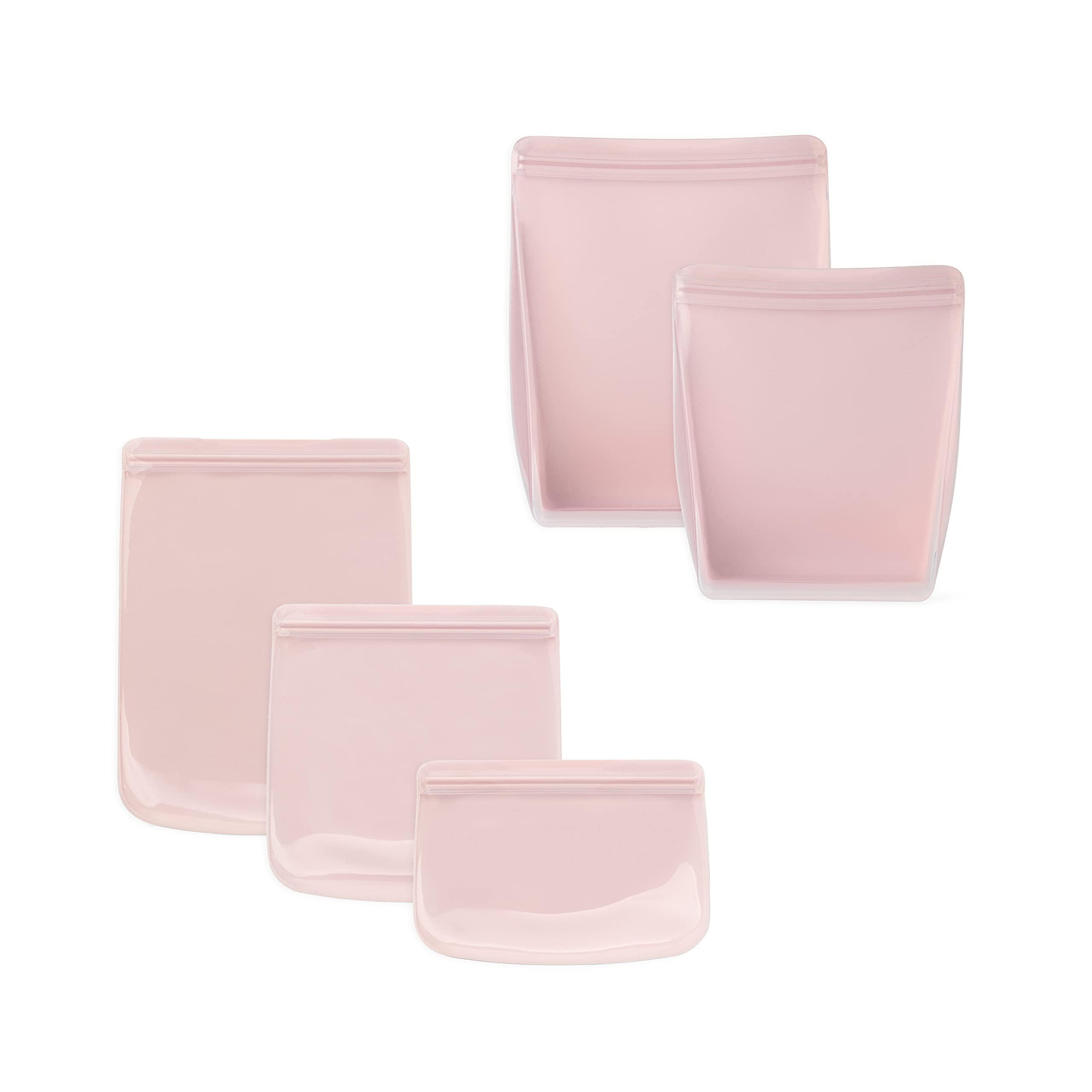 A perfectly plastic-free set of bags! Pure silicone (no adhesives) flips inside-out for easy cleaning. This Reusable Bags Starter Pack provides you with 10 oz, 34 oz, and 46 oz Flat Bags and 36 oz and 50 oz Stand-Up Bags to cover all your storage needs, from snacks, sandwiches, and marinated meats to leftover chips and frozen cookie dough balls. Each bag is made from one piece of 100% LFGB-certified silicone with no chemicals, glues, or adhesives. Flip the bags inside-out to hand-wash or throw in the dishwasher. Clear front lets you mark and see contents, while colorful back panel provides pop of color. Dont limit the bags to culinary uses use it to store make-up, crafts, first-aid supplies and much more.