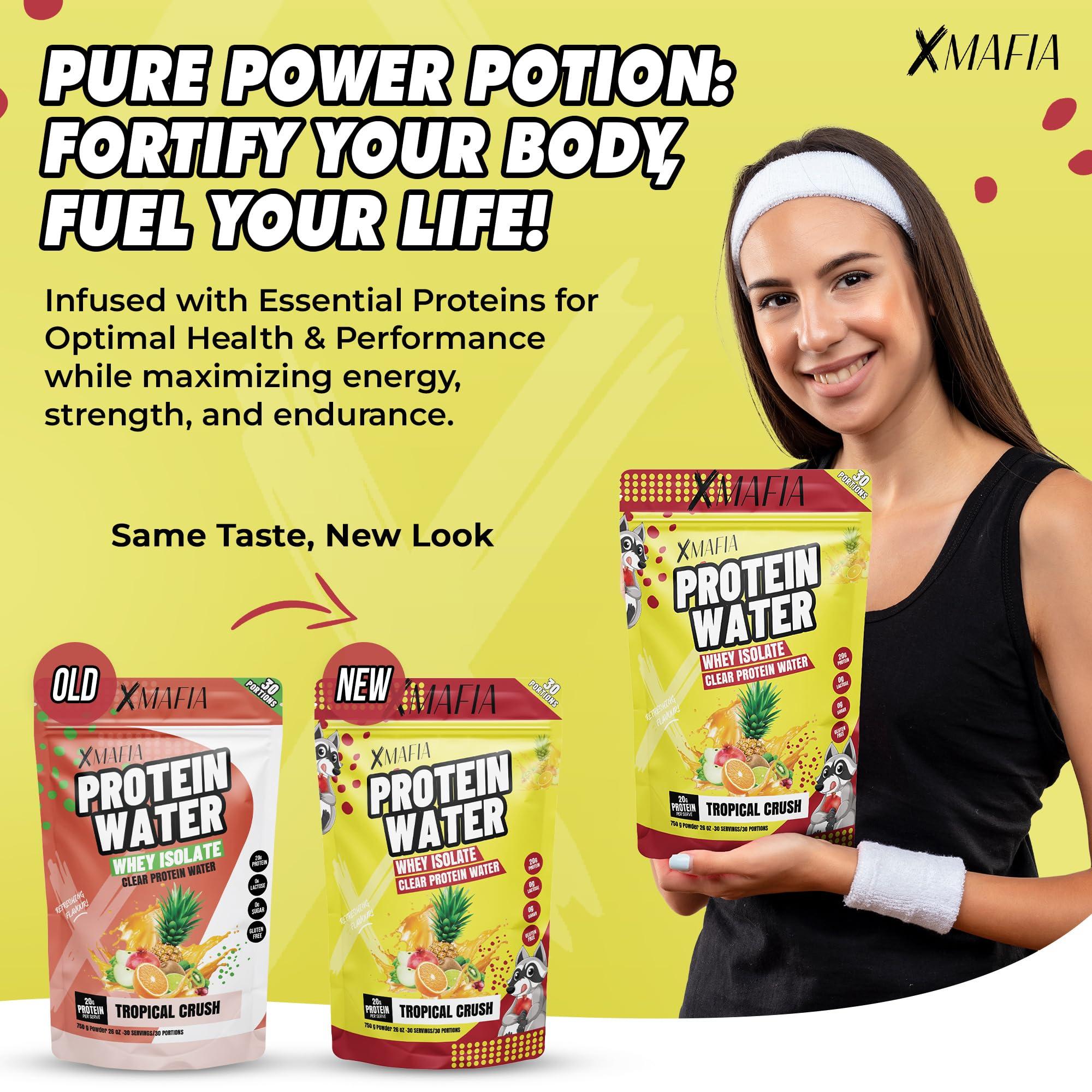 - 20G OF PURE PROTEIN: Fast digesting & ultra pure water. Fuel your body with 30 servings, 20 grams of high-quality whey protein isolate per serving. Whether you're replenishing after a workout or need a protein boost on the go, XMAFIA Protein Water provides the protein your muscles crave, WITHOUT THE HEAVINESS OF TRADITIONAL SHAKES.