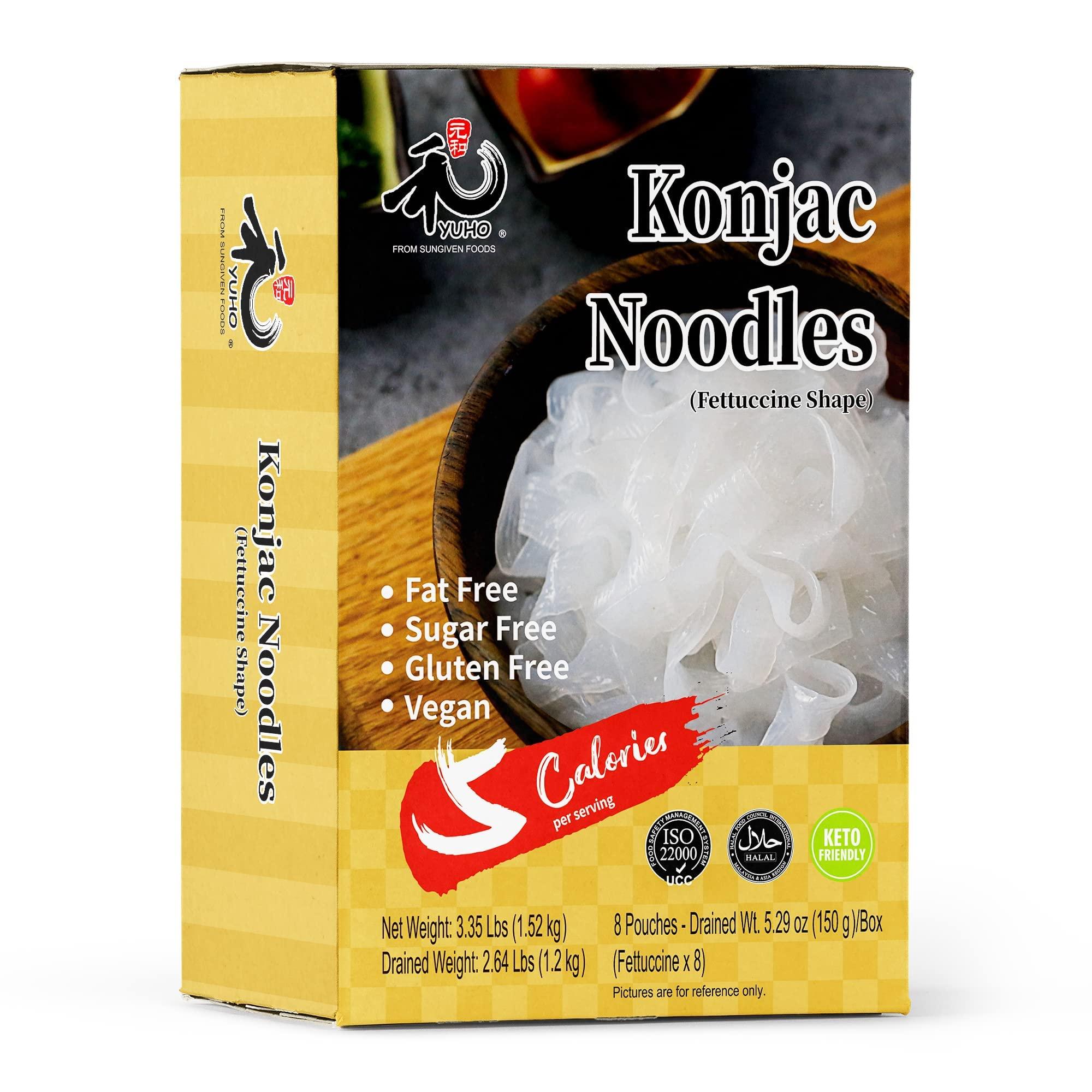 - [PROMOTES HEALTHY]: Konjac-based pasta, YUHO konjac noodle promotes healthy weight loss with a delicious food staple that's only 5 calories per serving. Available in angel hair, fettuccini and rice. People has embraced konjac as a healthy, affordable ingredient. It has been welcomed into sophisticated mainstream dining.