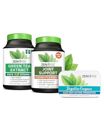 Zenwise best selling Green Tea Extract, Joint Support, and free Travel Size Digestive Enzymes tin