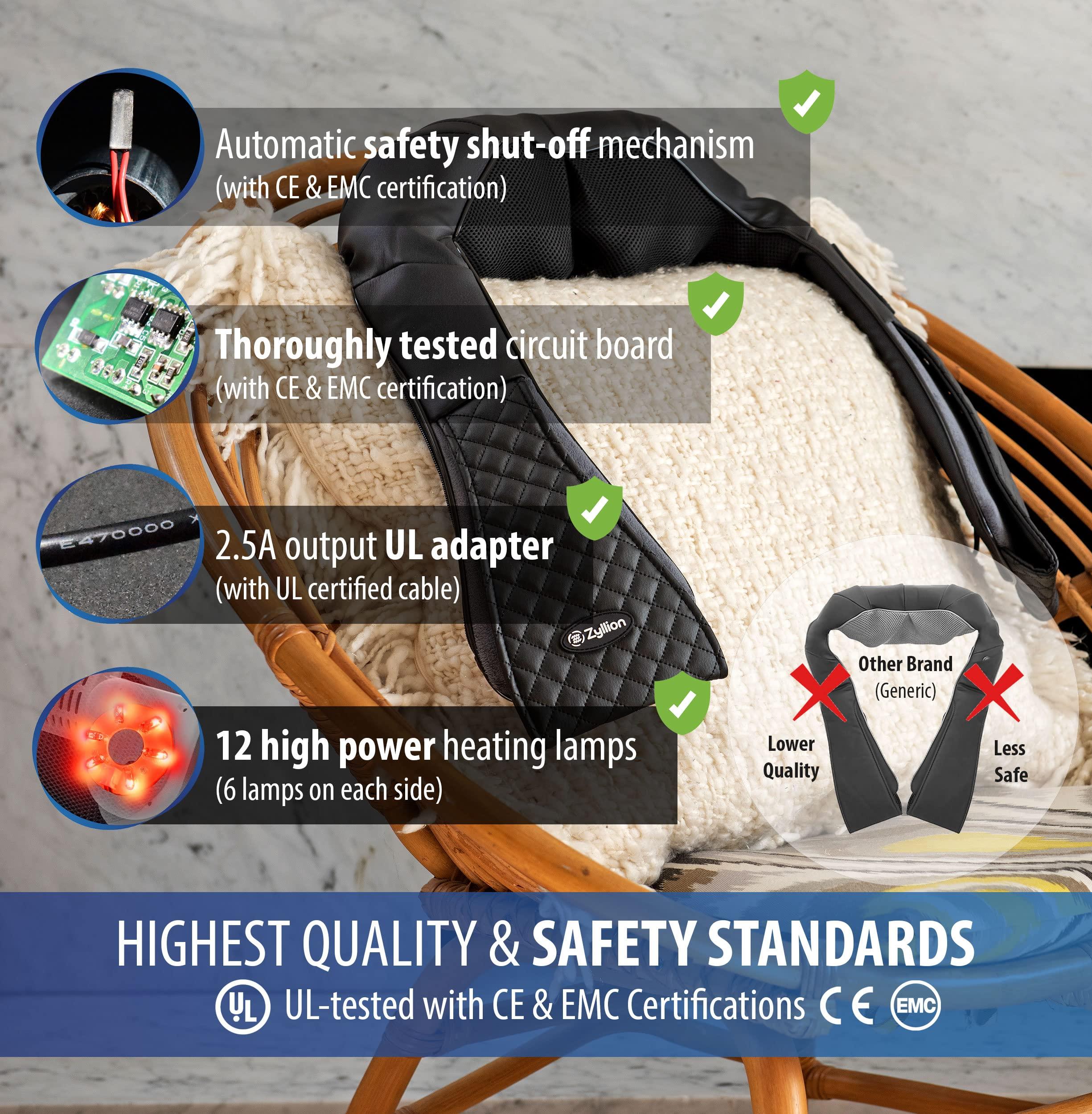 - Premium Quality and Certified: delivers the safest and highest quality products to our customers so you can use it without worry and peace of mind. Unlike most massagers that aren't regulated, our electric back massager is equipped with a 20-minute auto shut-off feature.